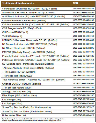 Test Reagent Replacements